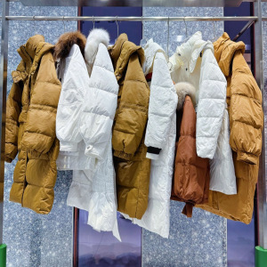 杭州四季青冬季新款YUTU大毛领鹅绒服韩版宽松休息棉服女装批发
