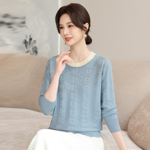 年轻时尚妈妈装春秋新款圆领薄毛衣中年妇女秋冬装减龄上衣打底衫