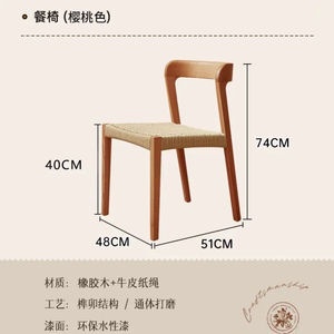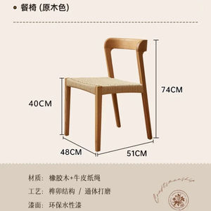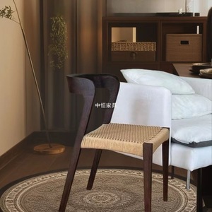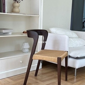 北欧实木绳编餐椅设计师靠背复古家用桌椅靠背椅简约休闲中古椅子