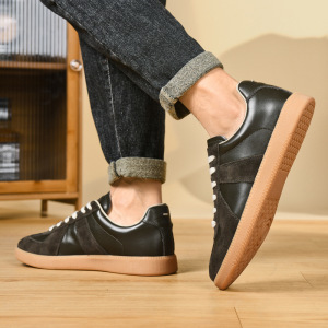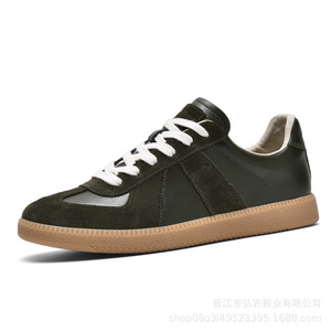 轻奢高端薄底低帮缓震舒适头层牛皮德训鞋时尚百搭真皮休闲滑板鞋