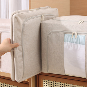 楼兰66升衣服收纳箱大容量防潮防水防霉pp板5.0钢架棉麻人字纹款