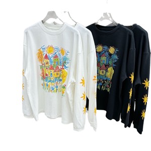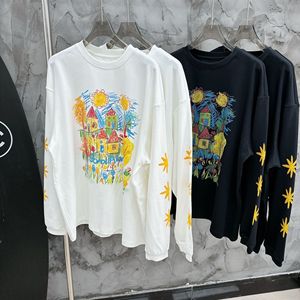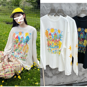 2025秋季新款韩版彩色涂鸦印花长袖T恤女宽松百搭上衣情侣T圆领潮