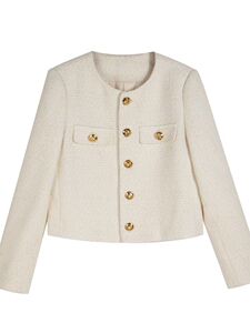 2025年春秋新款高级感圆领小香风短款外套女小个子法式粗花呢精致