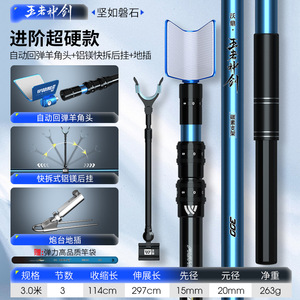 超硬【进阶大物版】3.0米+自动回弹羊角头+金属快拆后挂+地插