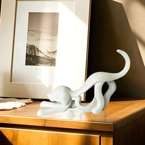跨境新品抽象丝带狗雕像家居办公桌面装饰品书桌书架台面装饰摆件