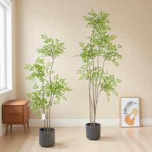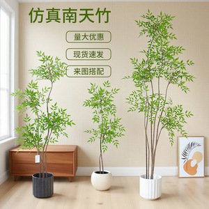 高端轻奢仿真绿植南天竹大型室内客厅装饰摆件软装落地造景假植物