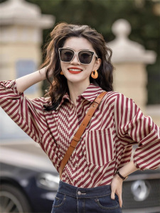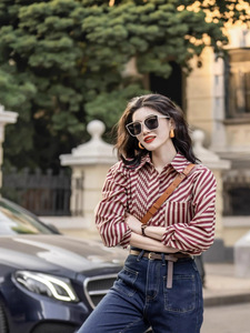 哥家商场同款女装2025春秋新款港味复古百搭休闲条纹衬衫上衣