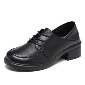 批发真皮粗跟单鞋女秋季软底舒适圆头妈妈鞋防滑中跟女鞋801338