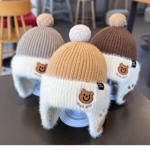 宝宝帽子秋冬秋冬季小熊针织可爱护耳毛线帽男童冬天男女儿童保暖