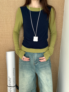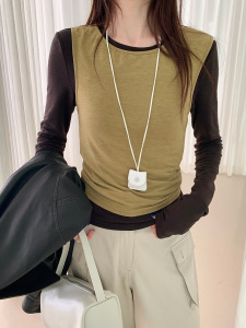 韩国东大门2025秋季新款修身显瘦背心长袖t恤打底衫叠穿真两件套