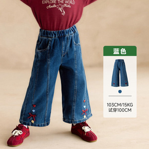 童贝童装2025年秋冬新款女童牛仔裤休闲韩版直筒百搭阔腿长裤韩版