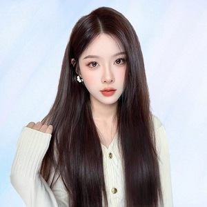 假发女真发全真人发全手织蕾丝隐形自然无痕中分八字长直发假发套