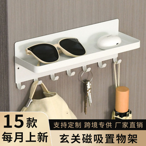 跨境铁艺门后挂钩家用免打孔磁吸置物架多功能壁挂玄关门后置物架