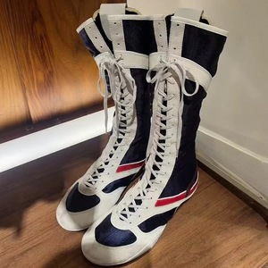 羊皮版~真皮软底德训猎装拳击靴女拼色百搭长筒骑士靴女高筒靴潮