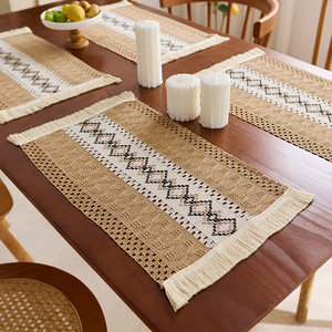跨境棉麻风餐垫北欧简约拼色流苏编织桌旗桌布节日派对装饰餐桌垫