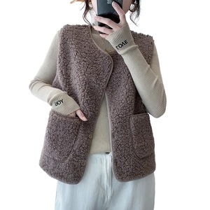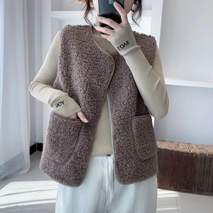 皮毛一体羊羔毛绒马夹女韩版秋冬款百搭宽松马夹背心坎肩外套