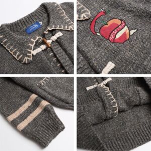 美式复古慵懒刺绣学院风牛角扣翻领苹果干刺绣开衫毛衣外套男女