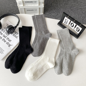 诸暨袜子男中高筒按摩底纯色男袜批发吸汗透气男士篮球运动袜棉