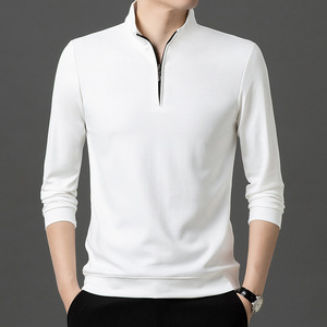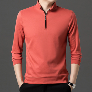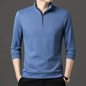 跨境批发男士长袖t恤半拉链立领卫衣春秋新款棉质休闲纯色打底衫