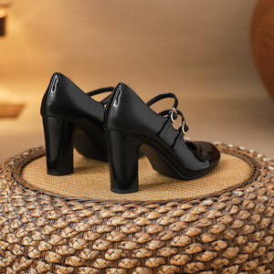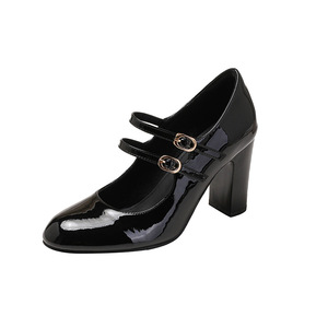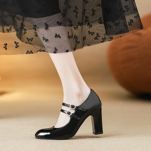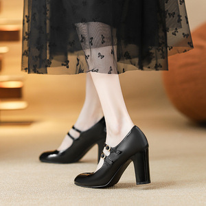 赫本风一字扣带浅口玛丽珍鞋女2025新款仙女风高跟鞋不累脚单鞋子