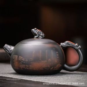 新款紫陶茶壶家用西施单壶吉象壶浮雕紫泥半手工功夫茶具伴手礼