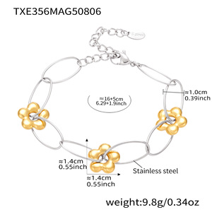 梦幻花朵长圈不锈钢双色项链手链镀18k真金个性小众夸张首饰套装