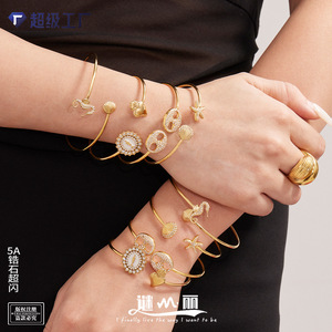 谜丽 轻奢5A锆石满钻几何开口细圈手镯组合时尚度假风不锈钢手饰