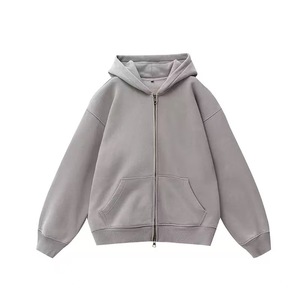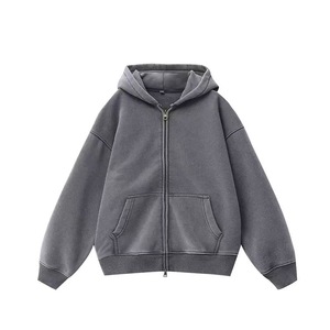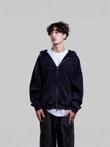 亚马逊美式抓绒潮牌水洗卫衣连帽开衫复古双拉链卫衣男女宽松帽衫
