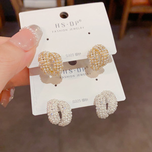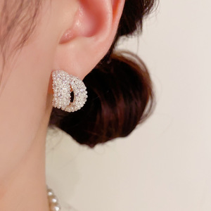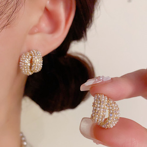 韩版气质温柔百搭几何镶钻珍珠耳钉女精致时尚轻奢高级感耳环批发