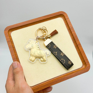 马上有钱足金钥匙扣卡通生肖黄金小马挂件情侣百搭可爱挂饰礼物