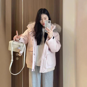 外贸大毛领韩版棉服女短款冬季2025新款宽松工装棉衣加厚棉袄外套