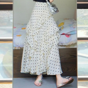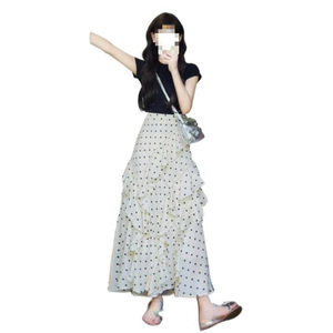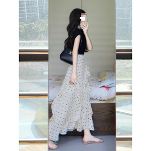 2025韩系时尚减龄两件套夏装新款搭配上衣波点高腰半身裙女一整套