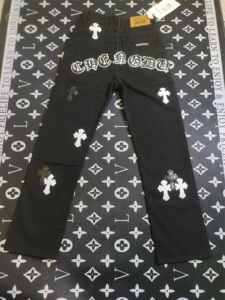高街美式限定克罗裤子宽松潮牌水洗长裤十字架贴皮直筒男女牛仔裤