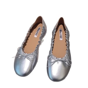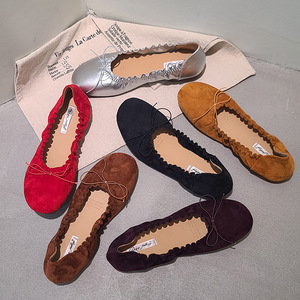 2025年春秋新款韩版浅口复古风低跟平底鞋蝴蝶结单鞋绒面芭蕾舞女