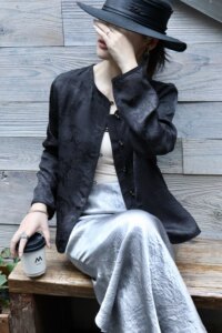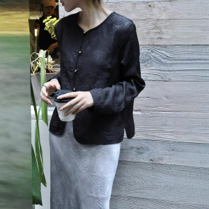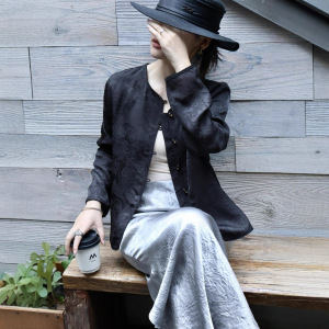 东方黑韵人丝冠乐绉香云纱外套上衣2025南油简约大方干练百搭实穿