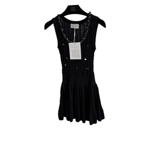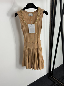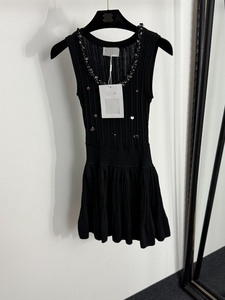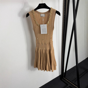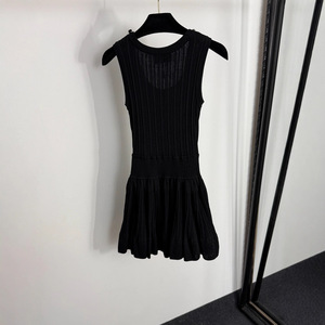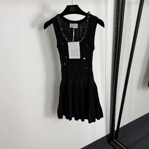 气质名媛小香风针织套装裙女款夏季重工设计感镶钻无袖背心连衣裙