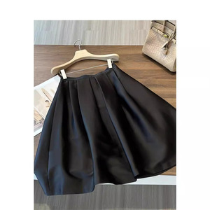 秋冬新款大摆优雅大气~ 厚缎黑色半裙 半身裙一件代发