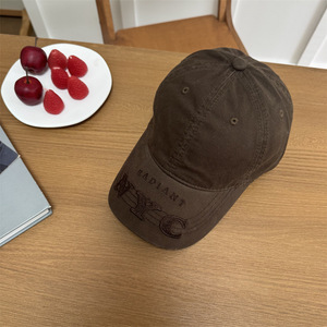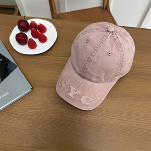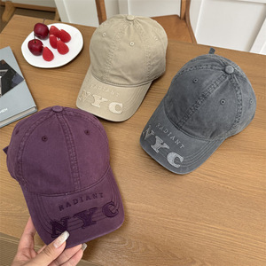 适合方圆脸鸭舌帽女帽子显脸小加宽帽檐美式做旧百搭大头围棒球帽