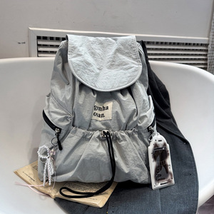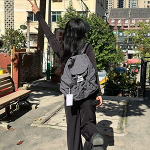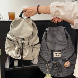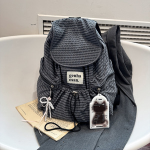 韩国松弛感格子双肩包设计休闲大容量旅行包轻便双肩包韩系背包女