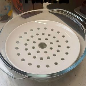 陶瓷蒸盘饺子盘蒸包子蒸海鲜沥水盘圆形多孔蒸格蒸笼水果盘微波炉