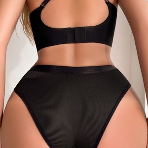 2025欧美双细带金属爱心中腰三角裤透气提臀纯色薄款无痕女士内裤