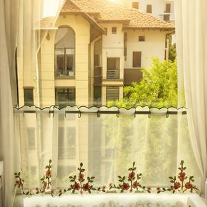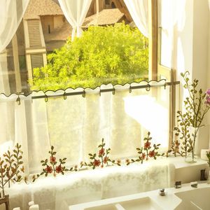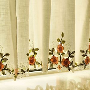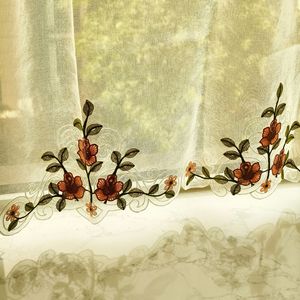 立体毛线绣花彩色花蔓 半遮光窗帘咖啡帘成品穿杆隐私遮挡帘
