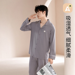 莫代尔棉睡衣男秋季居家纯色睡衣春秋款男士休闲可外穿家居服套装