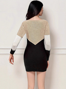 2025年秋冬新款拼接色长袖长款毛衣式连衣裙