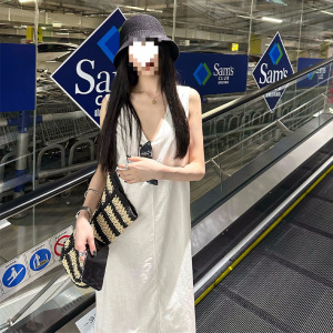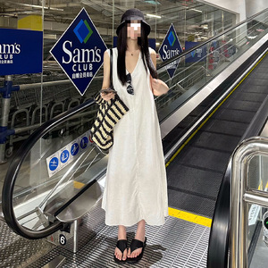 海边度假白色v领连衣裙子女夏季2025新款小众高级感显瘦气质长裙