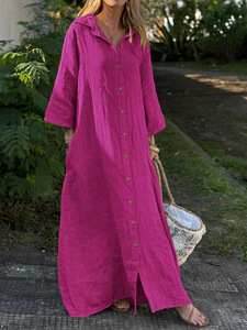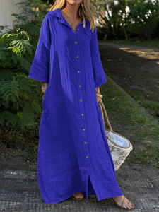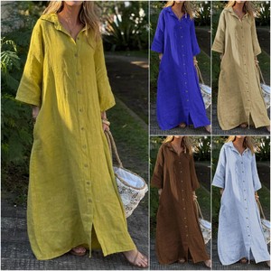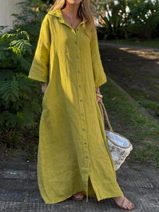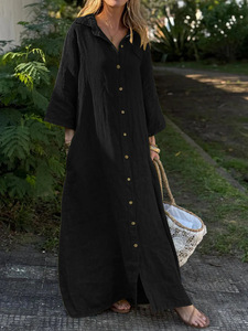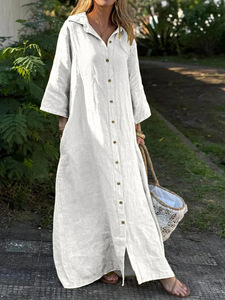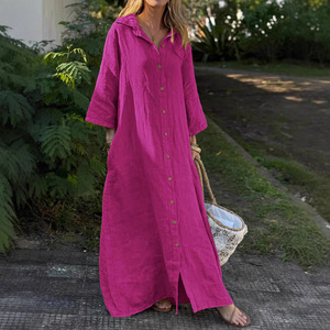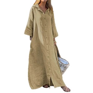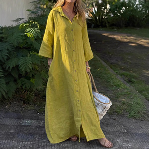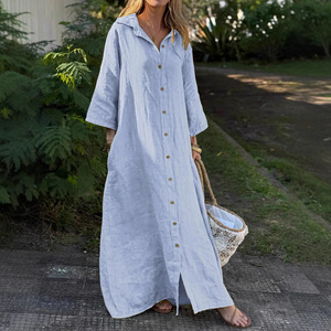 2025年秋季新款跨境亚马逊女装棉麻衬衫长裙休闲长袖开衫长连衣裙