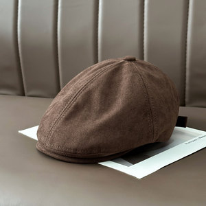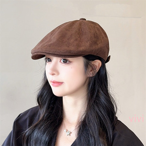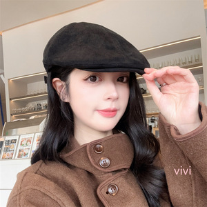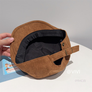 美式复古纯色前进帽女秋冬保暖百搭文艺画家帽可调节鸭舌贝雷帽子