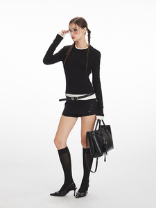 HeyHenry 假两件修身显瘦长袖t恤打底衫女春秋季撞色内搭正肩上衣