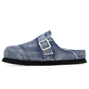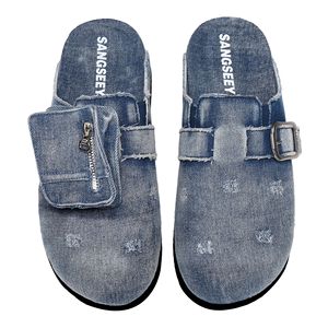 SANGSEEY情侣款隐形增高鞋潮流原创设计款包头拖鞋透气牛仔勃肯鞋