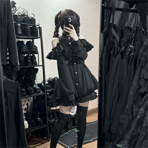 春季学院风重工蕾丝露肩连衣裙小众设计感百搭短裤两件套装